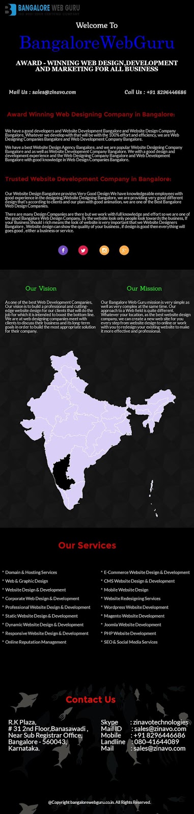 Bangalore Web Guru is one of the leading Brand and ISO 9001:2008 Certified Company in Bangalore, From past 10+ year we are in this industry with hard work and we are award winners, as a team ,we have earlier done a lot of brand promotion,We worked through our knowledge, experience,and creativity with a number of good clients, We are one of the best Web Designing company in Bangalore.
